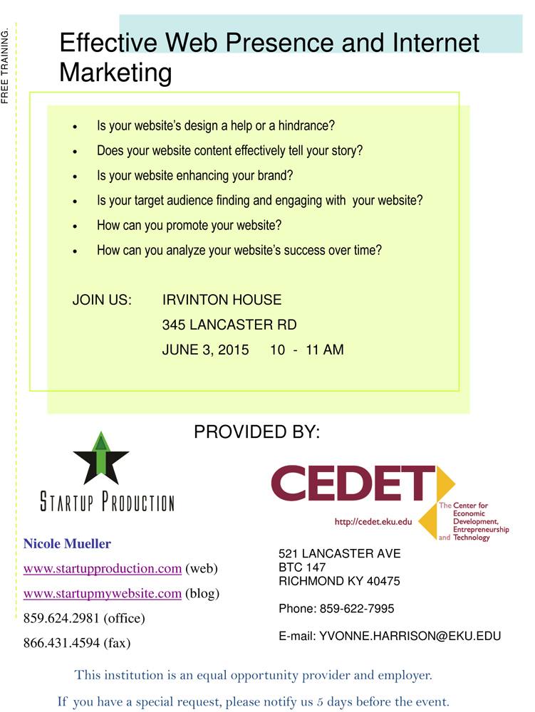 MACED FASTTRAC®. I was able to again participate in MACED’s FastTrac entrepreneurial 16 week class where I was a Business Coach and a presenter to the two classes, New Ventures (for startups) and Growth Ventures (for existing businesses). I was able to present my workshop, “Effective Internet Marketing” to both classes, which led to great discussions with the students and great feedback after.