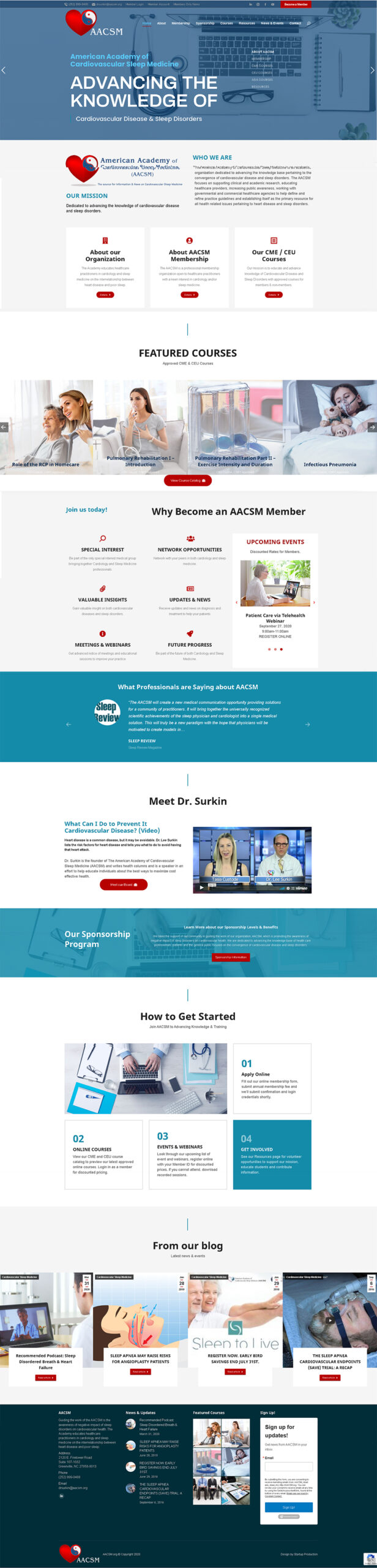 AACSM’s director, Dr. Surkin, was referred to Startup Production by one of the Academy’s board members, who we’ve worked with on other websites. We redesigned AACSM’s website with new branding, updated logo, enhanced content, clean layout and navigation with added functionality including membership management, ecommerce, online course learning management system, event calendar, and third-party software integrations. The new website also does not incur monthly fees, which is another way that Startup Production’s services provide practical use and cost-savings. Our services and pricing is geared to small businesses, startups and non-profits. We will also be providing on-going support, social media and internet marketing for AACSM.