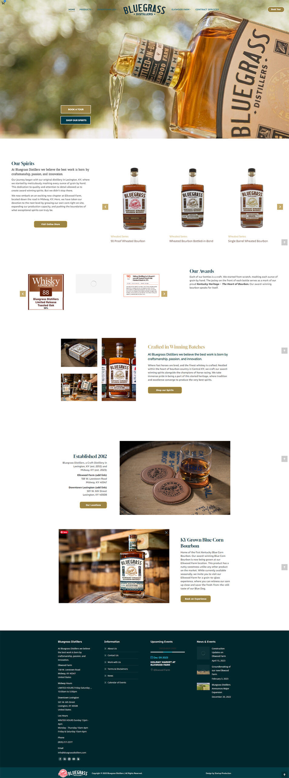 Maggie and Dani contacted Startup Production after finding our website on Google and previewing our portfolio of websites and graphic design projects. Their Squarespace site needed to be upgraded to a fully expandable, responsive and SEO-friendly WordPress website that features their recent growth, including their new location in Midway, as well as showcase their full product line, their philanthropy program and tells their unique story and journey. We also incorporated and organized newly written content to clarify and showcase their contract services for other growing distilleries. Their goal was to create a simplistic, stylish design to showcase them as the Home of the first Kentucky Blue Corn award-winning Bourbon. Mission accomplished.
