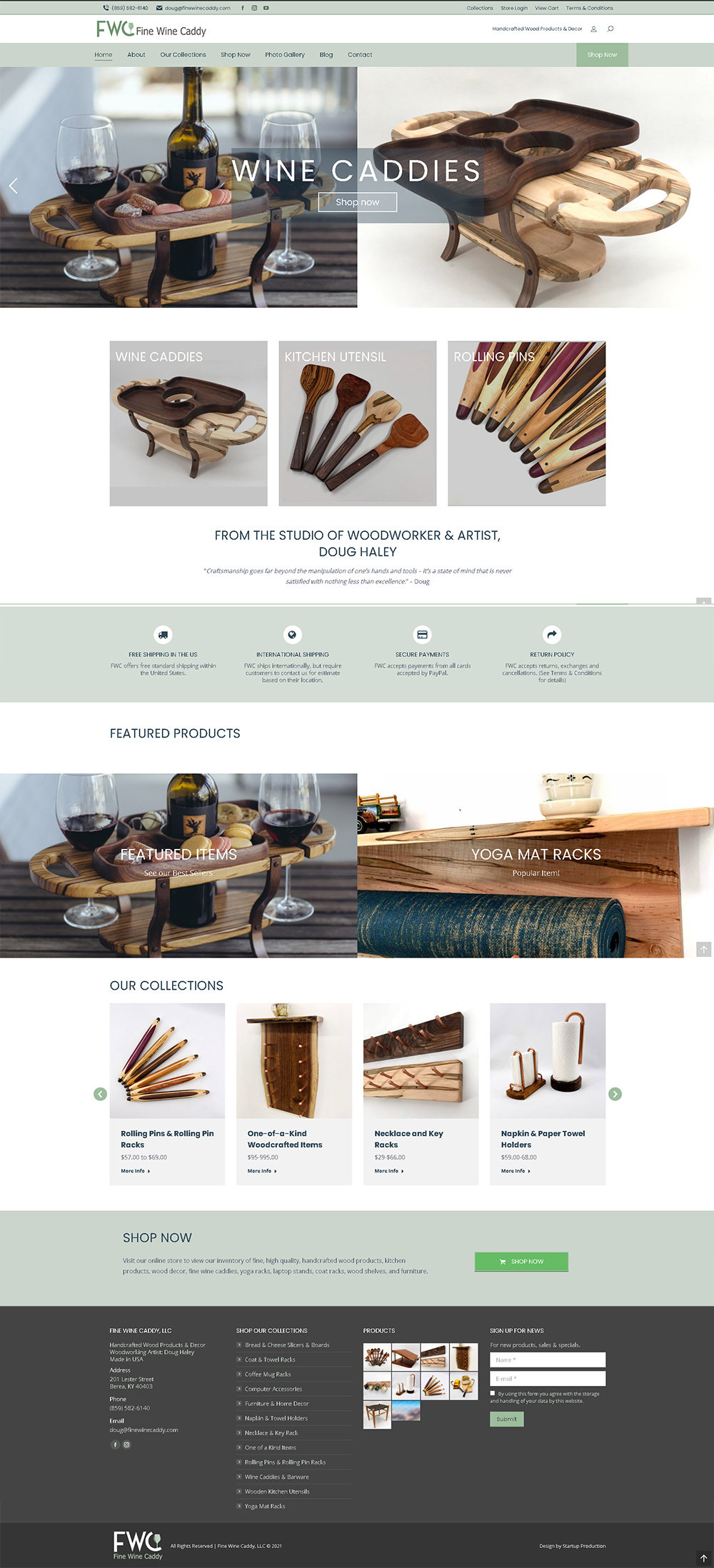 A loyal client since 2010, Doug Haley originally found out about Startup Production through a referral from the Mountain Association of Berea (formerly MACED) and returned to us in 2021 when it was time to refine his web presence. Doug of Fine Wine Caddy, who was selling in the recent years through Etsy, wanted to expand his exclusively online business with a professional web presence with a online shopping experience via Shopify. With a new main SEO-friendly WordPress website, we created a professional designed web presence incorporating their brand, tell their ongoing story and mainly to attract more web traffic to their online store. While many ecommerce platforms like Shopify offer easy to use catalogs, checkout and ecommerce functionality, their ability to build SEO ranking and building organic traffic to their site needs some help, which is why we often compliment with a WordPress website that has unlimited expansion for content and functionality. Their new responsive WordPress website with a customized theme, added keyword rich content, easier navigation, and integrated ecommerce functionality was completed according to the client’s preferences and timeline. We also spend as much time the client needs for training on the WordPress content management system and Shopify’s functionality to add new products and fulfill orders.