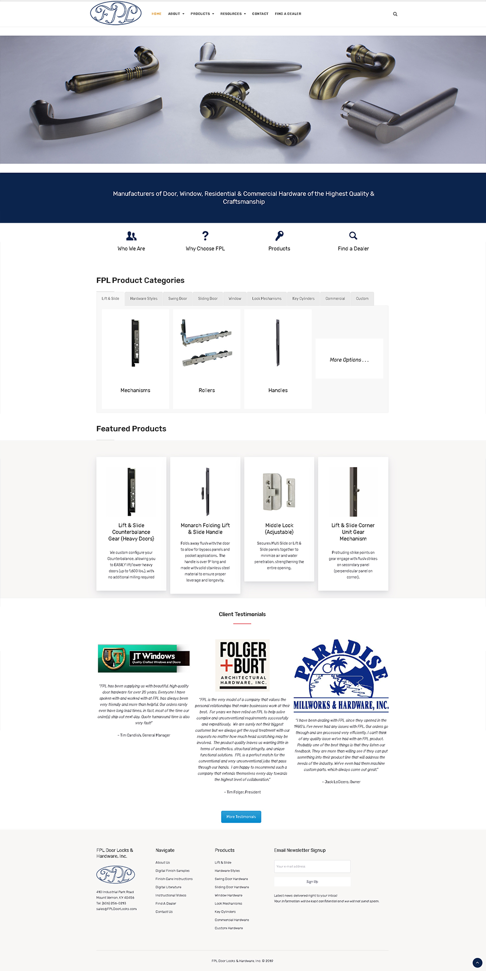 I started working with FPL Door Locks on their new website, new branding and new functionality in March 2017 and completed all requests in their initial estimate over a year later (after several staff-related delays), but the company was still not ready to go live and wanted to continue working on adding and photographing their large catalog of inventory, as well as adding additional functionality, before they went live. After several training sessions, I was able to instruct their staff to complete the loading of inventory and tweaking the content of their site, saving them time and money in this large project. I’m glad to say that at Startup Production, we are flexible to work with clients who have set deadlines or for those who want to take their time in developing their site, even over several years. We can customize the process of development for each client according to the client’s needs, and with over 20 years’ experience we know when it’s time to hand the project over to the staff for their financial saving and added sense of control and micromanaging. I’m glad to see their site went live earlier this year.