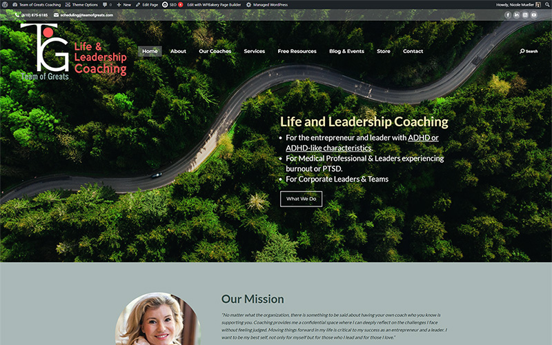 Referred by long-time client, Ellen London, the owner and founder of Team of Greats, Audrey Simmons reached out initially to Startup Production for help with their marketing strategy and how best to spend her time promoting her new coaching business. We developed an I.M.A.P report for Audrey, after which we developed a functional, responsive and SEO-optimized website.
