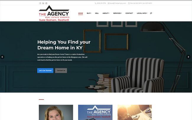Susie Basham, realtor located in Lexington KY,  who is part of The Agency Real Estate Experts team, wanted an individual website so she could reach her target audience in the Central KY area,