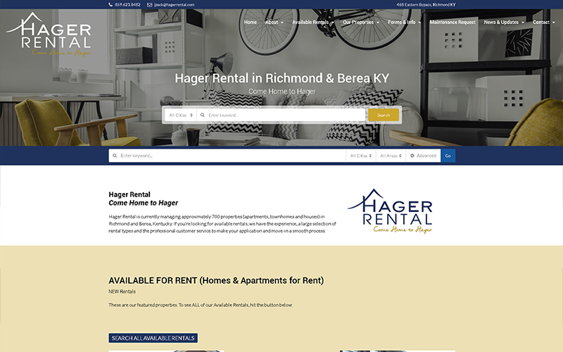 Hager Rental is a family owned local property management business managing over 700 properties in Richmond and Berea, Kentucky. They needed a website redesign with easy to use functionality.