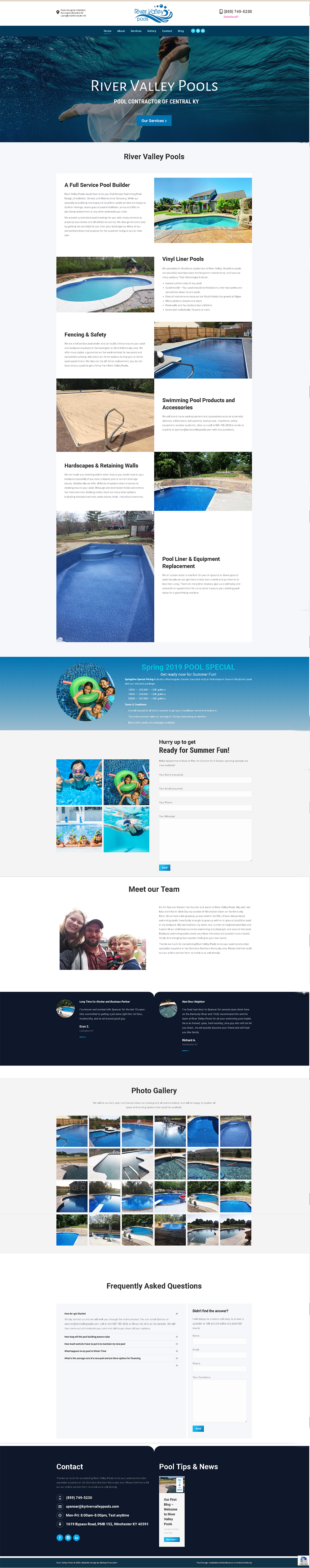 River Valley Pools offers Full Service Swimming Pool Design, Installation, Service and Maintenance Company in Central Kentucky. Spencer was referred to Startup Production through our organic Google listing, and after reviewing our website, called us. After working in the pool industry in the Cincinnati area, he wanted to start his new business in Central KY, where he now lived with his family. He needed a web presence that showed off his experience, his portfolio and his varied services in the residential pool industry. We created a website with keyword rich content, original quality photos, and a professional layout.