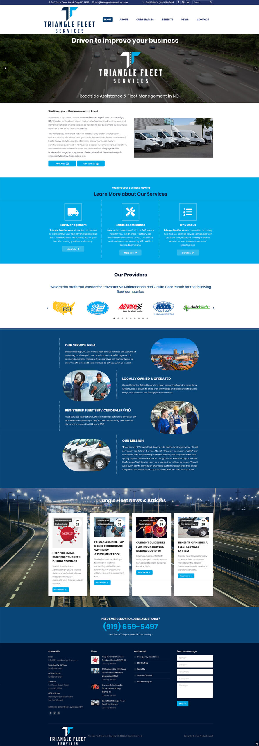 As a Web Design Vendor for Fleet International Services (FSI), we help many of their new franchisees with their logo design, web design and internet marketing. Rob Moore of a new Fleet Services franchise in Cary, NC, contacted Startup Production to develop his new website and help with formulating content, developing page layout and content management training with a clear Call-to-Action. We also optimized his website to assist in capturing the attention of his target audience which are Fleet Managers/Owners and Truck Drivers in the Raleigh-Durham area. After his site was completed, we scheduled a training session with the client so he can update and consistently add new content to his website for SEO success.