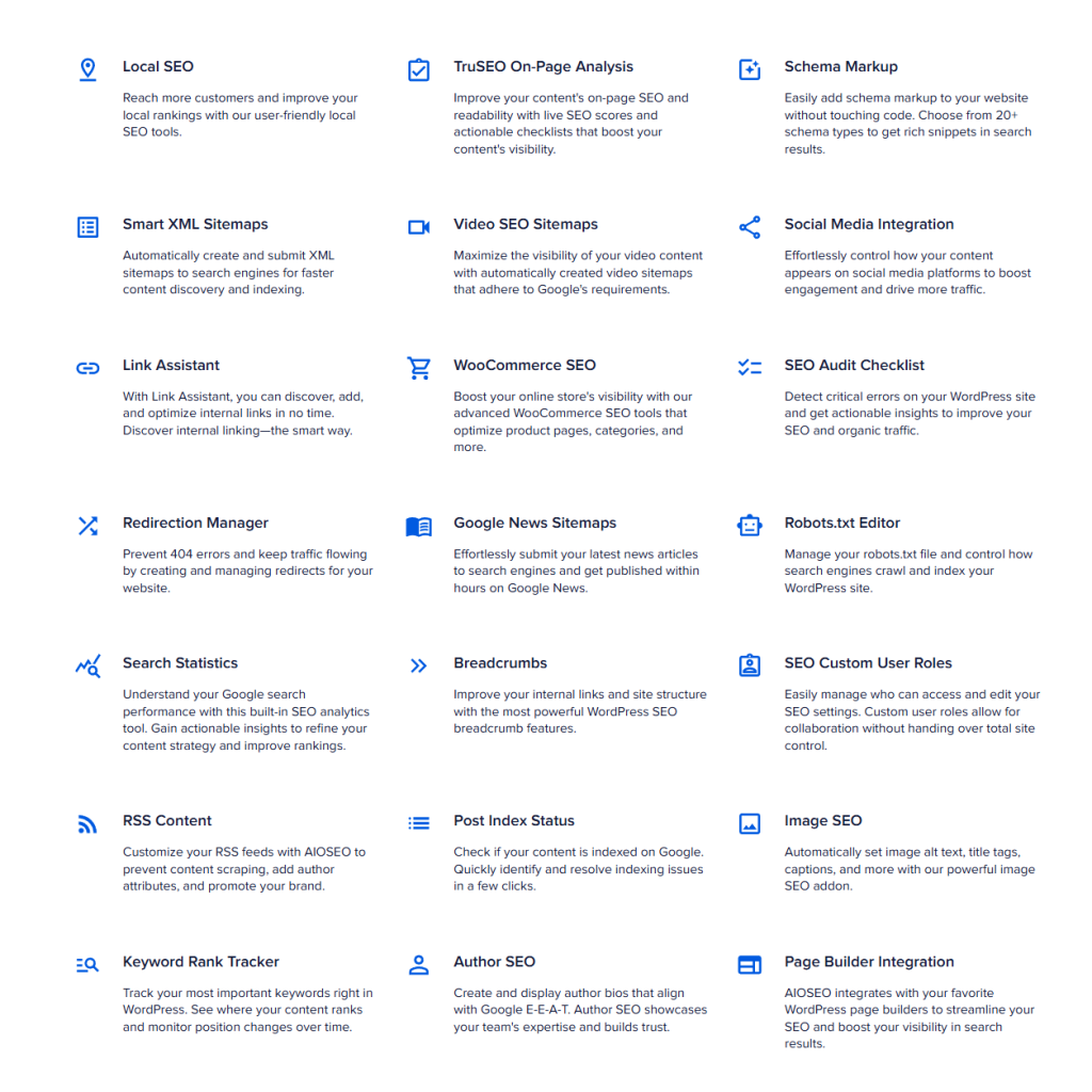 - All in One SEO (AIOSEO) – implements schema markup by automatically generates some basic schemas, like breadcrumb markup and Sitelinks Searchbox, while also allowing users to create and add custom or specific types of schema (such as Product, FAQ, Course, Recipe, and Software) to enhance content for rich snippets.